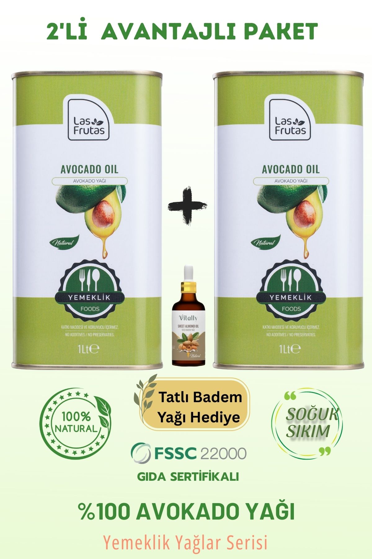 🌿Las Frutas Yemeklik Avokado Yağı 1 Litre 2’li – Soğuk Sıkım, Çok Amaçlı, Saf & Doğal