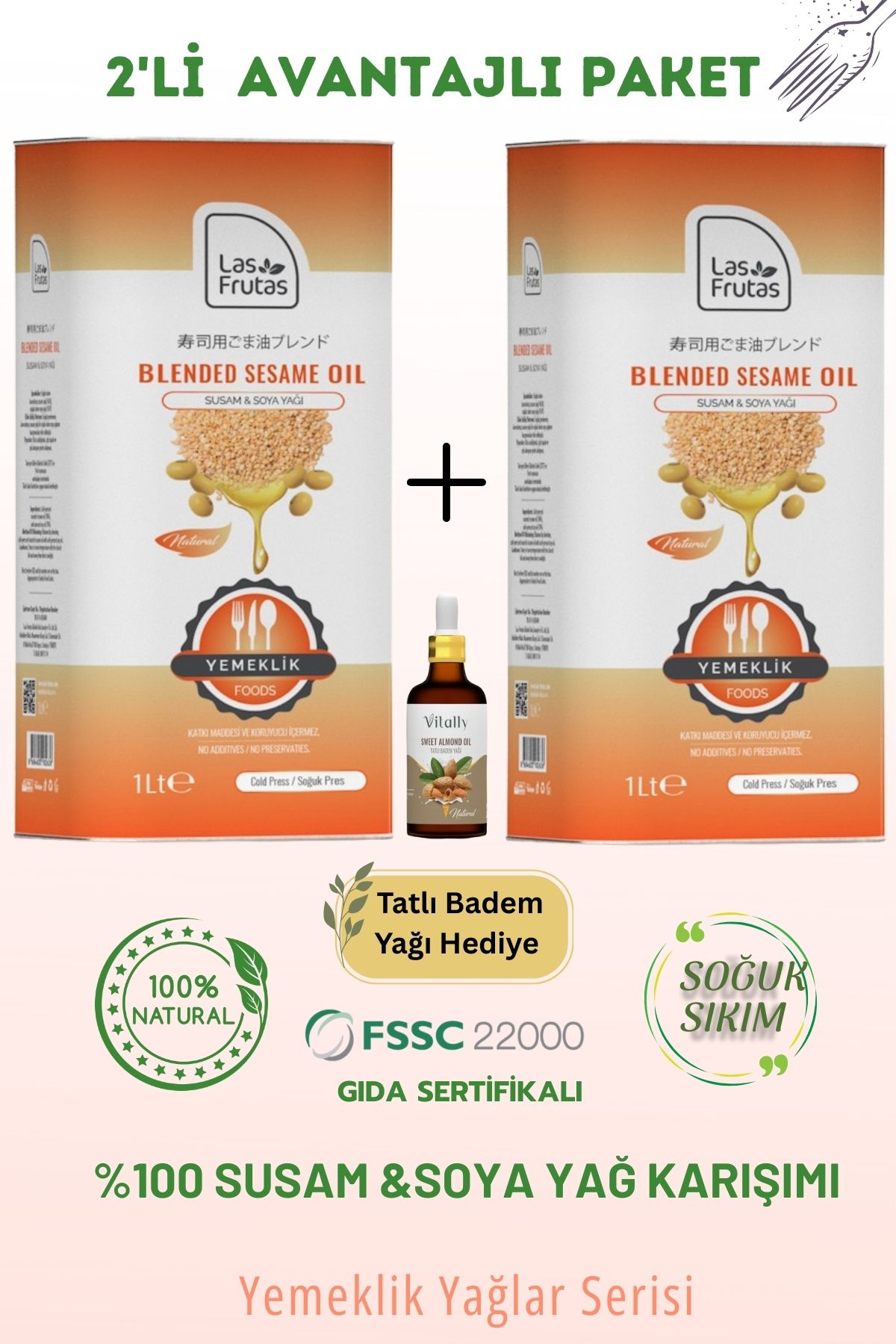 Las Frutas Yemeklik Susam & Soya Bitkisel Yağ Karışımı 1 Litre 2’li – Soğuk Sıkım, Çok Amaçlı, Saf & Doğal